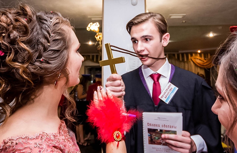 На игре выпускников встречают ведущие — уже в стилистике квеста. Они настраивают на нужный лад, раздают знаменитые гангстерские шляпы, вуалетки и другие тематические аксессуары всем желающим. Ребят делят на команды и каждой достается своя уникальная легенда. Теперь им придется постараться, чтобы добится целей!